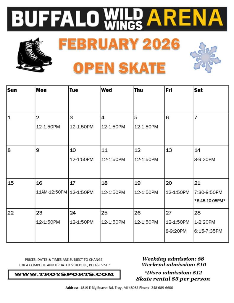 Open Skate Schedule (CLICK GREEN BUTTON ABOVE)